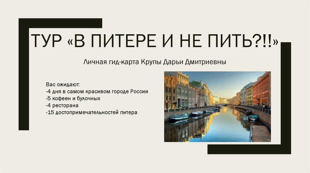 ТУР «В ПИТЕРЕ И НЕ ПИТЬ?!!»Личная гид-карта Крупы Дарьи Дмитриевны