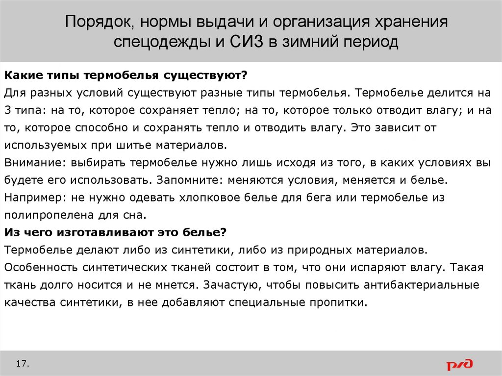 Порядок, нормы выдачи и организация храненияспецодежды и СИЗ в зимний период