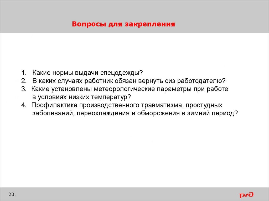 Вопросы для закрепления1. Какие нормы выдачи спецодежды?