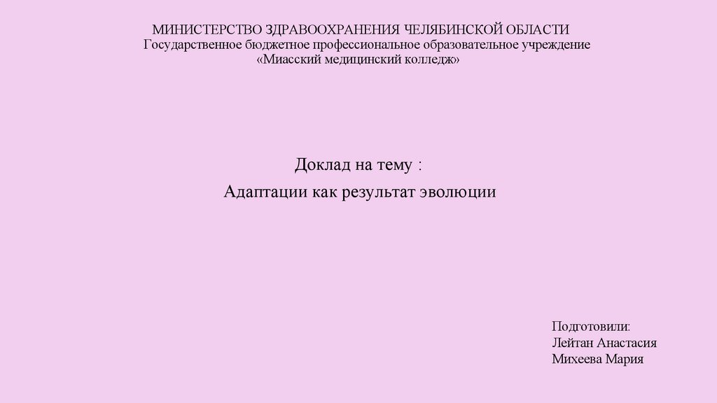 МИНИСТЕРСТВО ЗДРАВООХРАНЕНИЯ ЧЕЛЯБИНСКОЙ ОБЛАСТИГосударственное бюджетное профессиональное образовательное учреждение