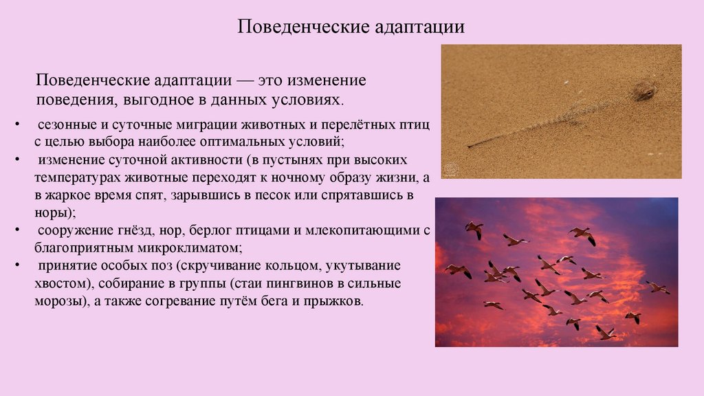 Поведенческие адаптацииПоведенческие адаптации — это изменение