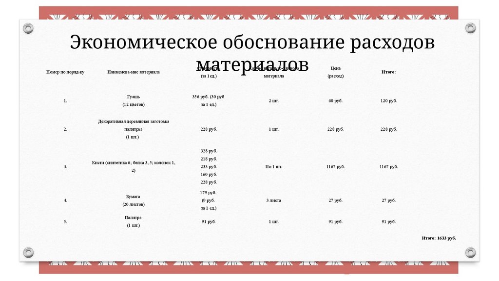 Экономическое обоснование расходовматериалов