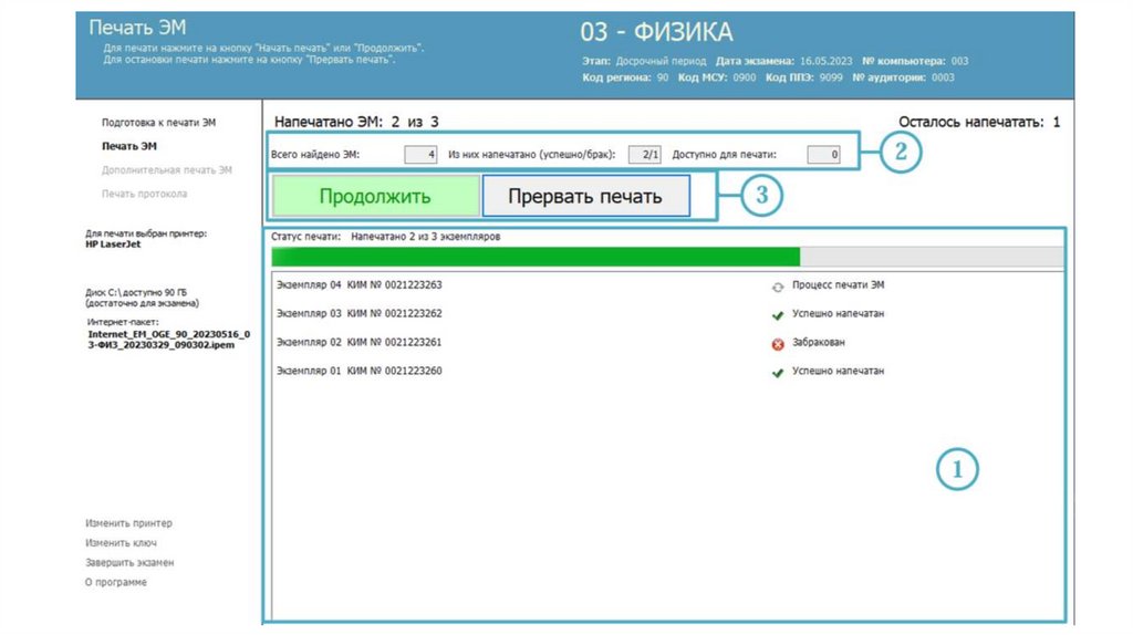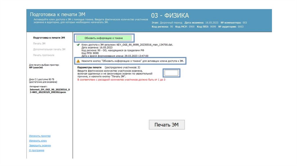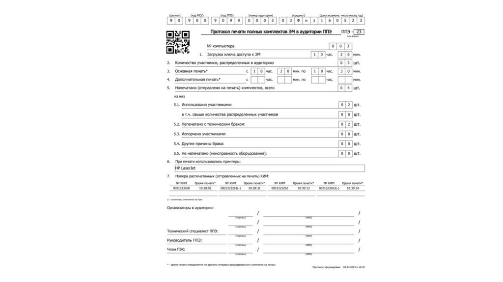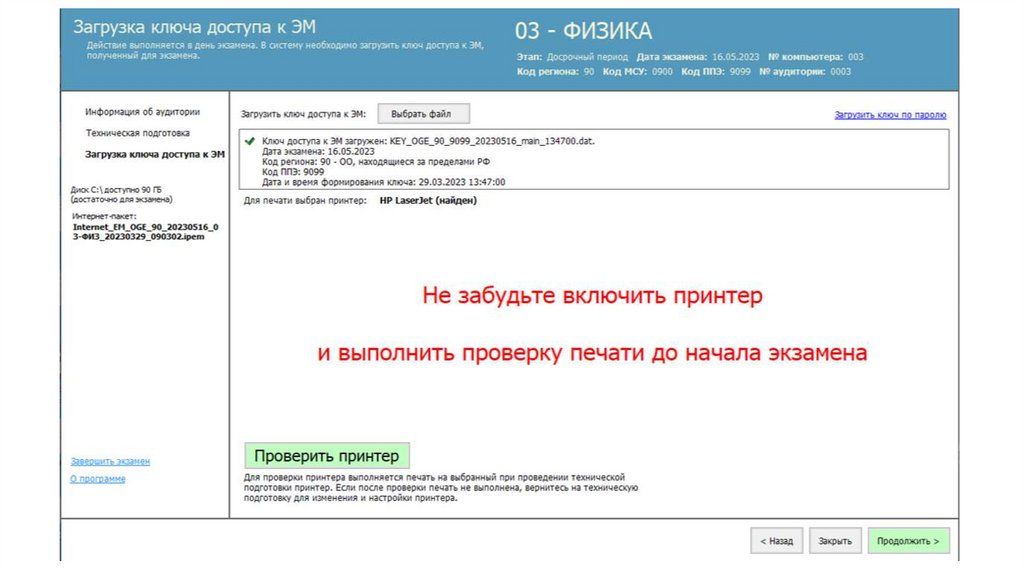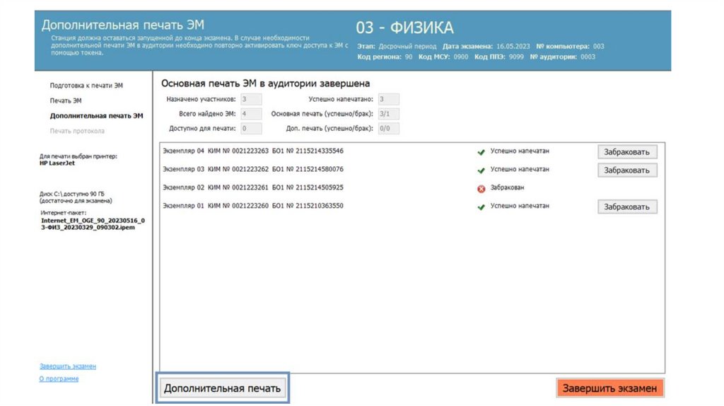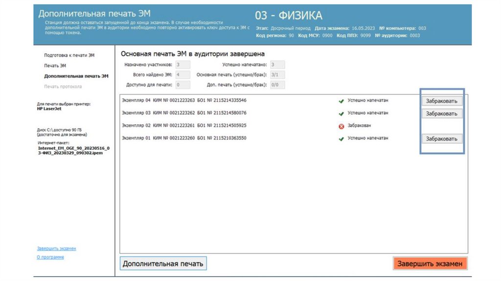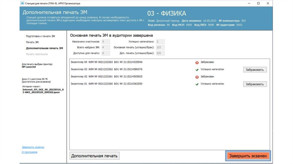 Действия организатора в аудитории (станция печати и станция КОГЭ)