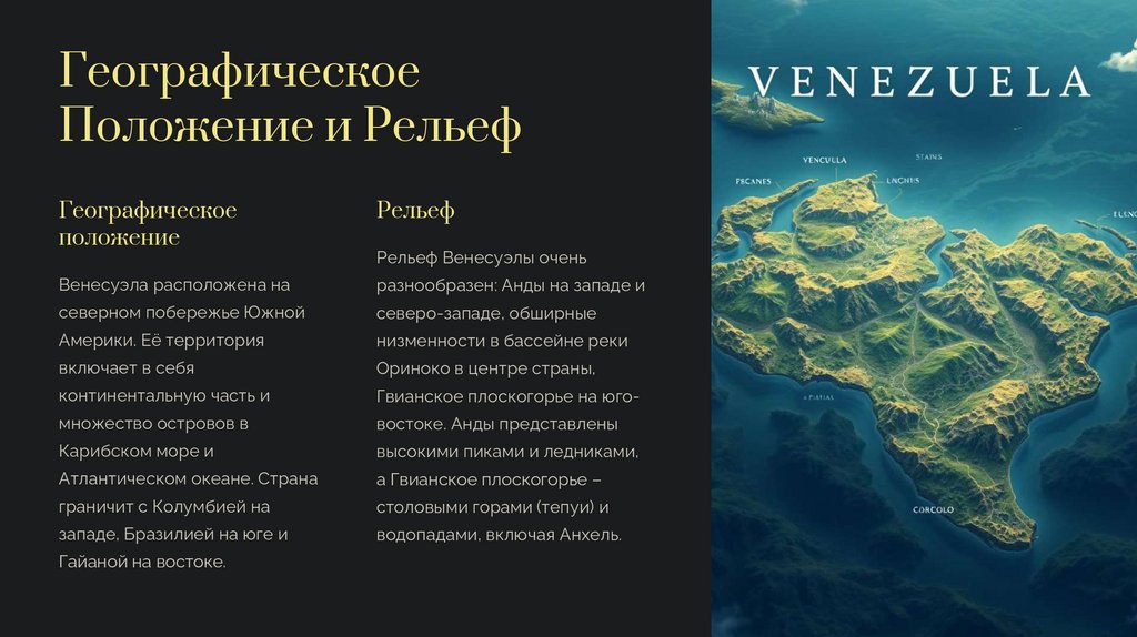 Венесуэла:Венесуэла расположена на северном побережье Южной Америки,