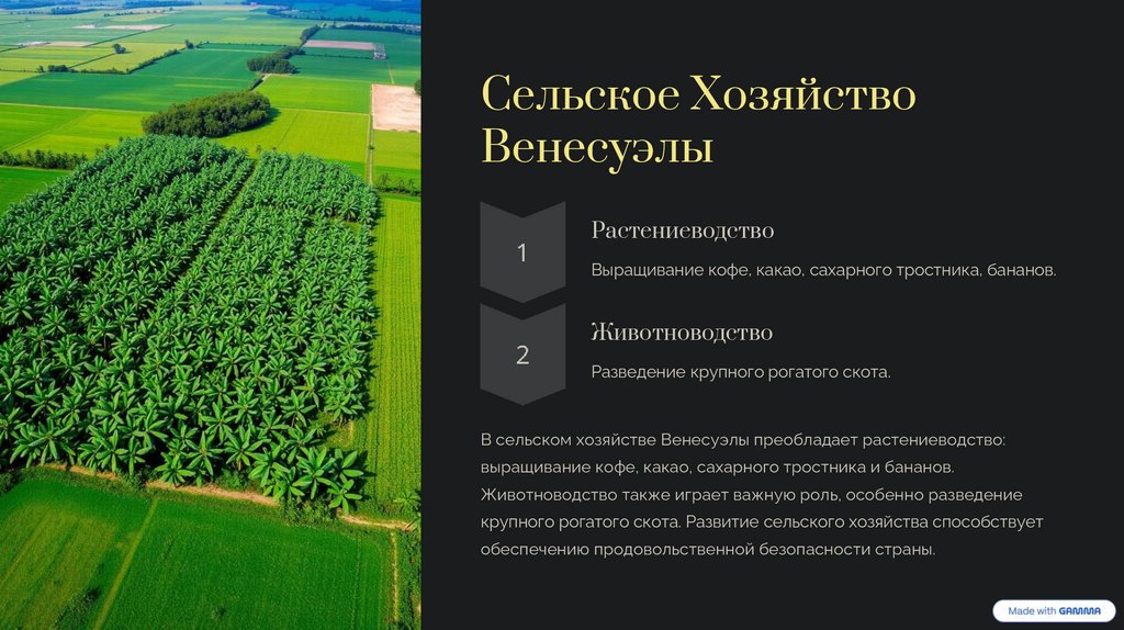 В сельском хозяйстве Венесуэлы преобладает растениеводство: