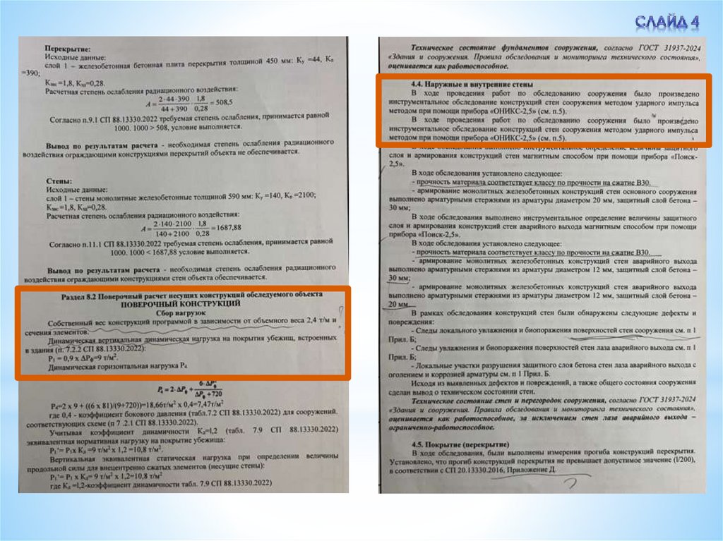 расчетных защитных свойств несущих и ограждающих конструкций ЗС ГО.