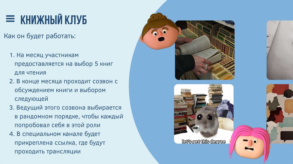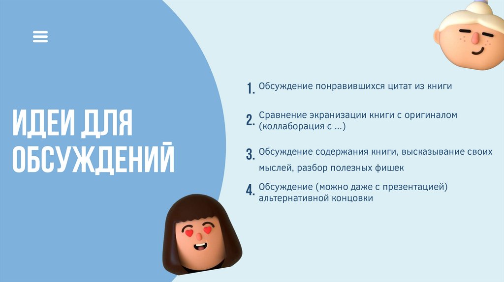 Идеи для обсуждений1.Коллаборация с книжным клубом
