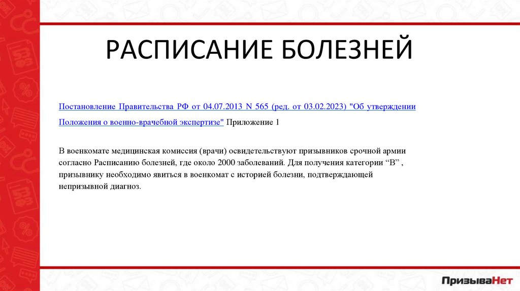 РАСПИСАНИЕ БОЛЕЗНЕЙПостановление Правительства РФ от 04.07.2013 N 565 (ред. от 03.02.2023) "Об утверждении