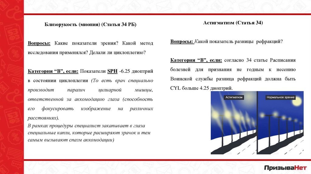 Близорукость (миопия) (Статья 34 РБ)Вопросы: Какие показатели зрения? Какой метод
