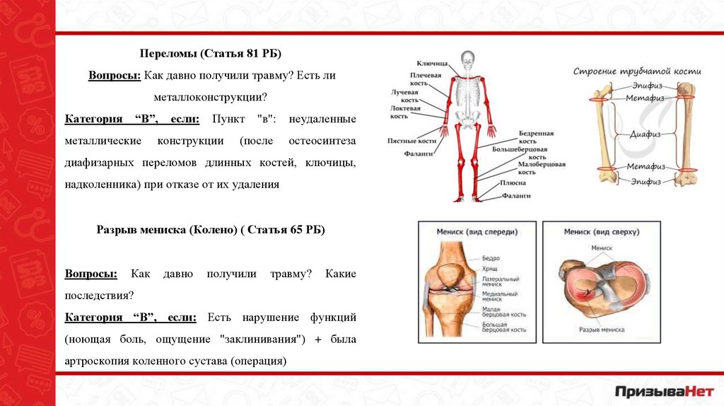 Переломы (Статья 81 РБ)Вопросы: Как давно получили травму? Есть ли