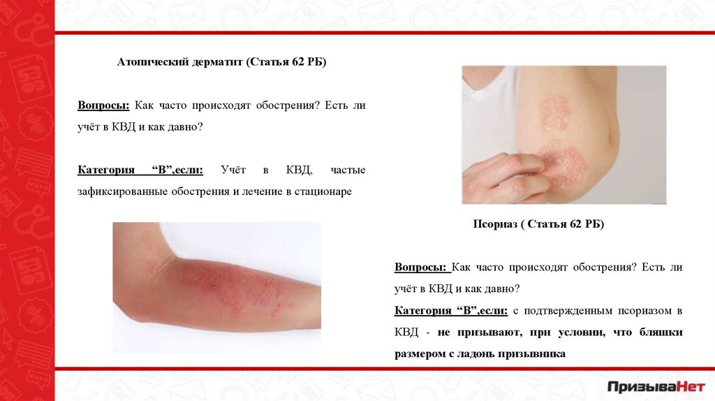 Атопический дерматит (Статья 62 РБ)Вопросы: Как часто происходят обострения? Есть ли