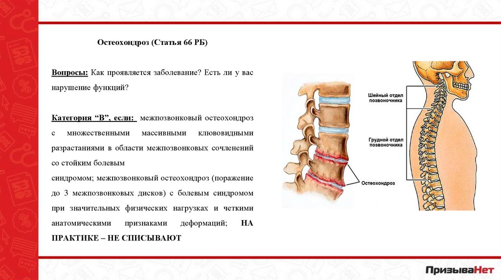 Остеохондроз (Статья 66 РБ)Вопросы: Как проявляется заболевание? Есть ли у вас