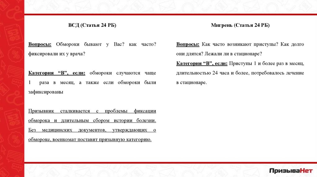 ВСД (Статья 24 РБ)Мигрень (Статья 24 РБ)
