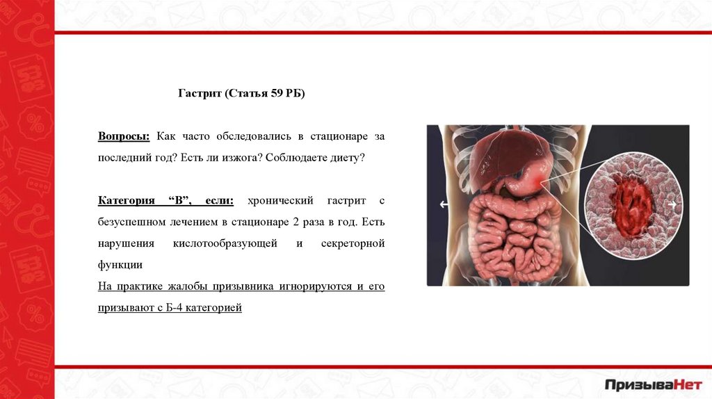 Гастрит (Статья 59 РБ)Вопросы: Как часто обследовались в стационаре за