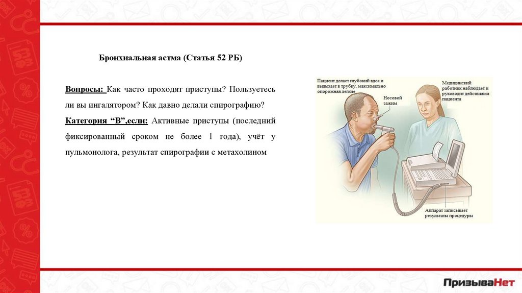 Бронхиальная астма (Статья 52 РБ)Вопросы: Как часто проходят приступы? Пользуетесь