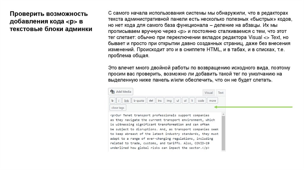 Проверить возможностьдобавления кода <p> в