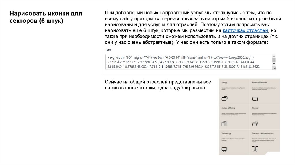 нарисовать еще 6 штук, которые мы разместим на карточках отраслей, но