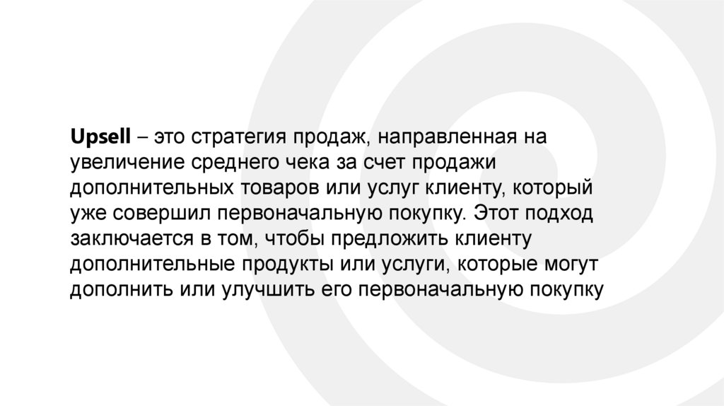 Upsell – это стратегия продаж, направленная наувеличение среднего чека за счет продажи