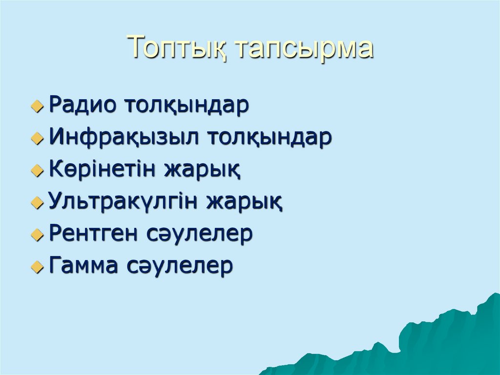 https://twig-bilim.kz/kz/film/what-makes-up-theelectromagnetic-spectrum12. Топтық тапсырма