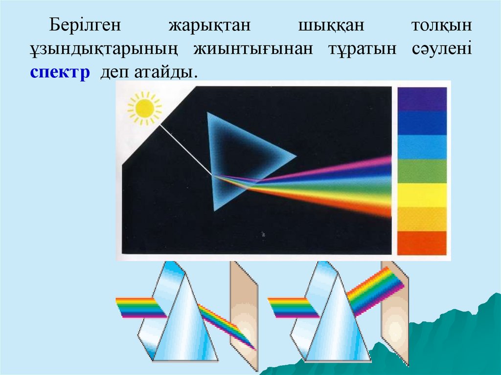 5. Берілген жарықтан шыққан толқын ұзындықтарының жиынтығынан тұратын сәулені спектр деп атайды.