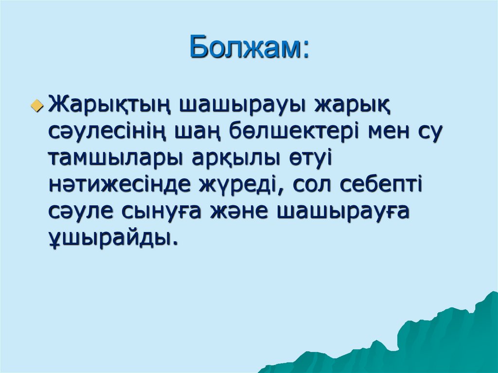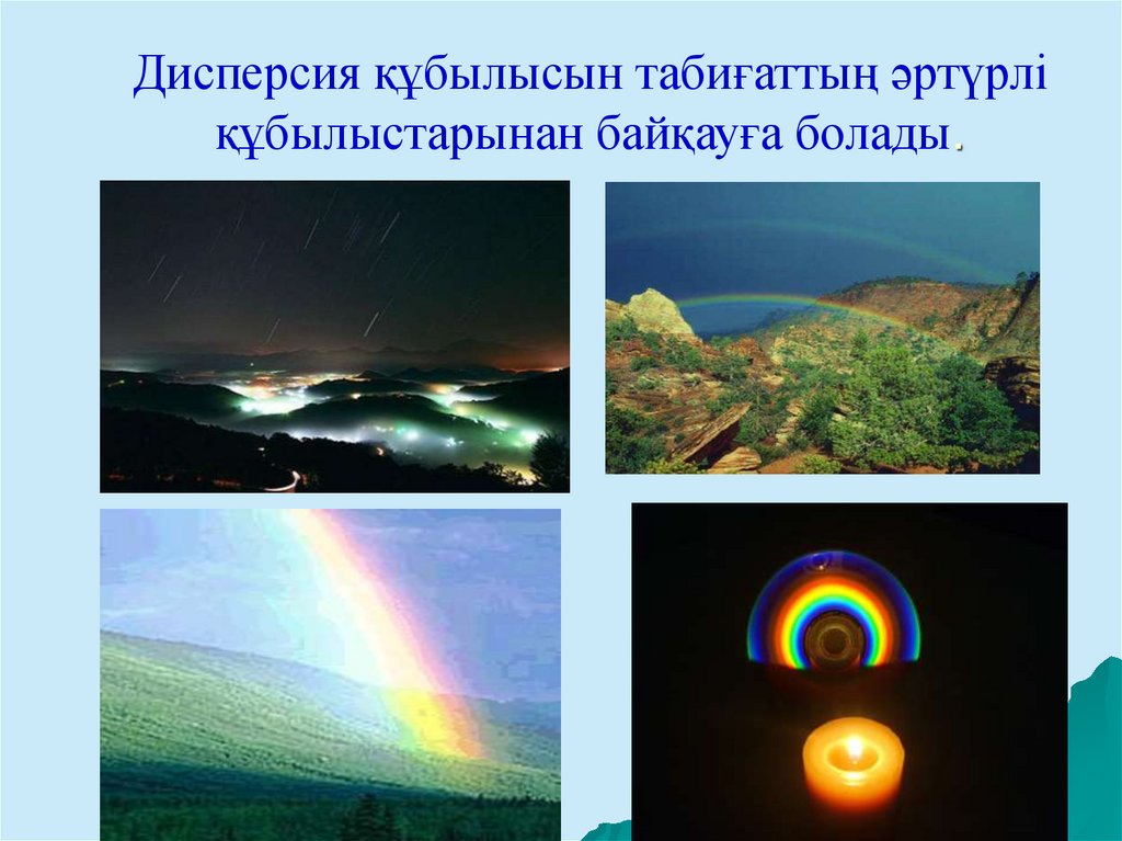 6. Дисперсия құбылысын табиғаттың әртүрлі құбылыстарынан байқауға болады.