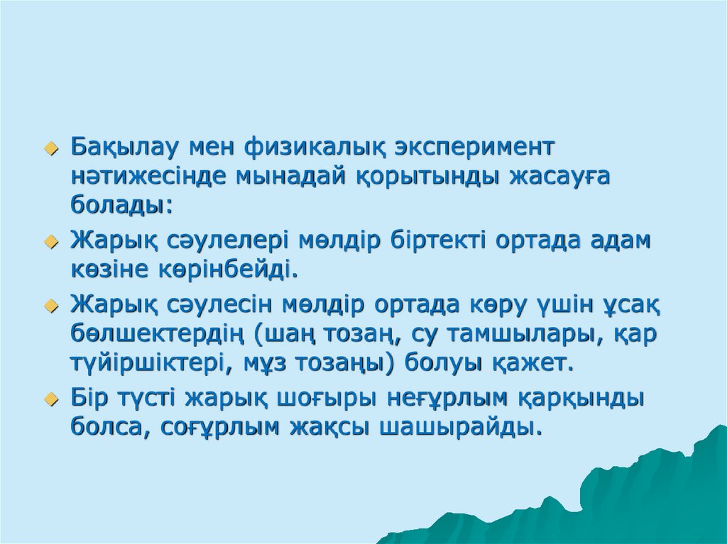 Бақылау мен физикалық экспериментнәтижесінде мынадай қорытынды жасауға