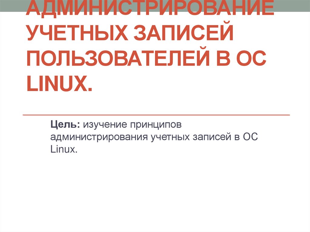 1. Тема: Администрирование учетных записей пользователей в ОС Linux.