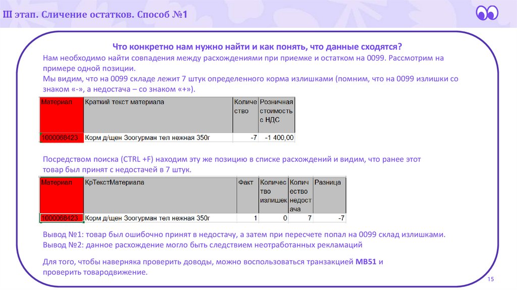 III этап. Сличение остатков. Способ №1Что конкретно нам нужно найти и как понять, что данные сходятся?