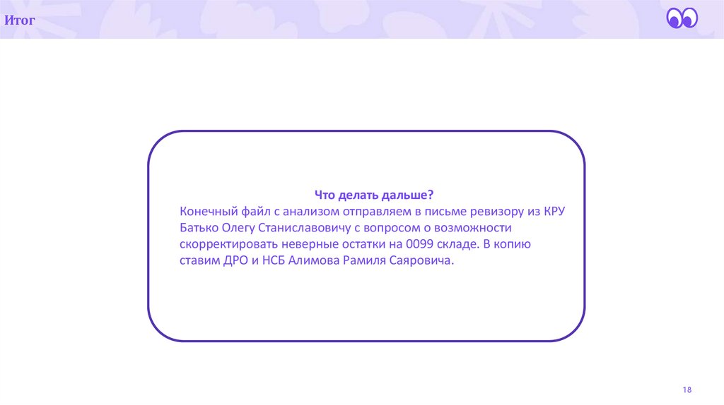 Конечный файл с анализом отправляем в письме ревизору из КРУ