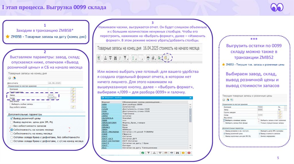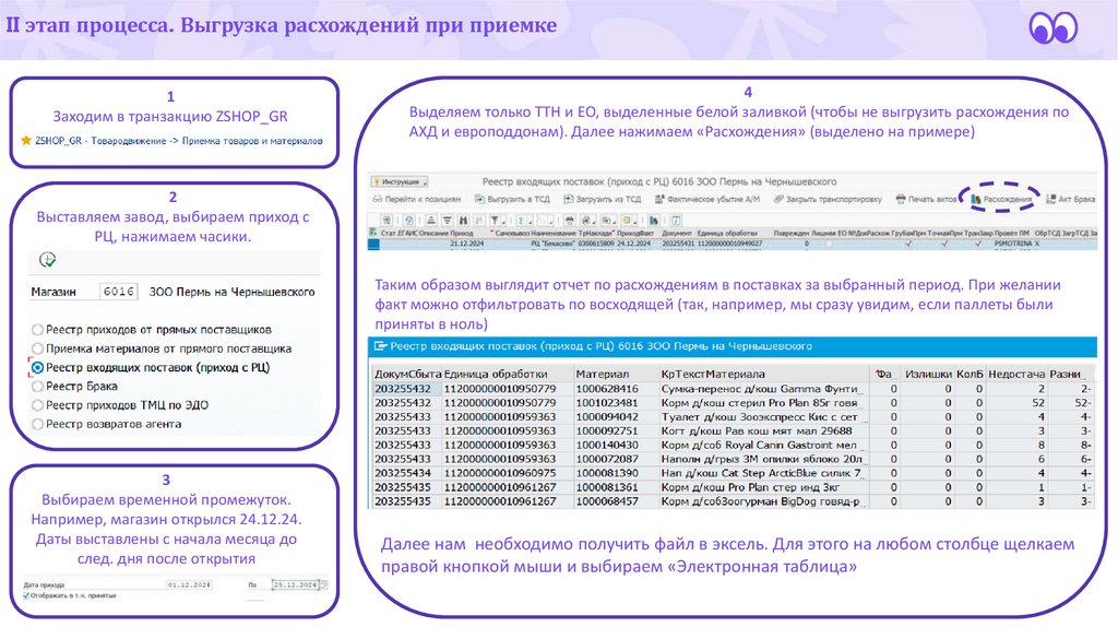 II этап процесса. Выгрузка расхождений при приемкеСправочно