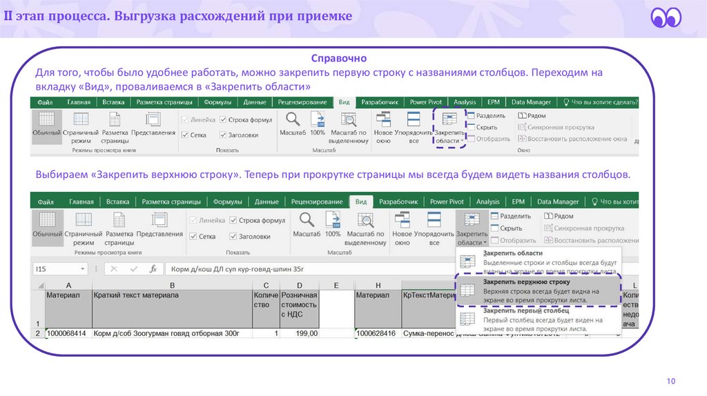Для того, чтобы было удобнее работать, можно закрепить первую строку с названиями столбцов. Переходим на