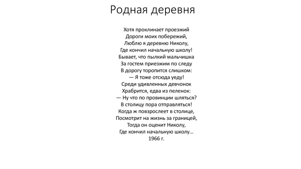 Родная деревняХотя проклинает проезжий