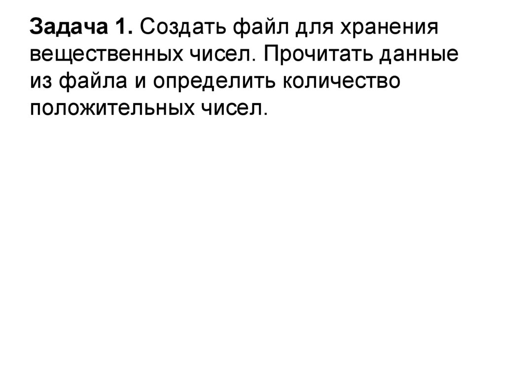 Задача 1. Создать файл для хранениявещественных чисел. Прочитать данные