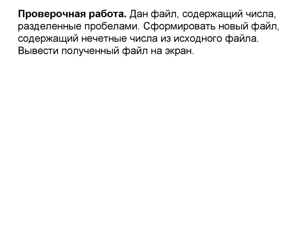 Проверочная работа. Дан файл, содержащий числа,разделенные пробелами. Сформировать новый файл,