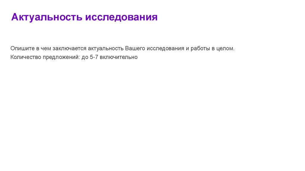 Актуальность исследованияОпишите в чем заключается актуальность Вашего исследования и работы в целом.