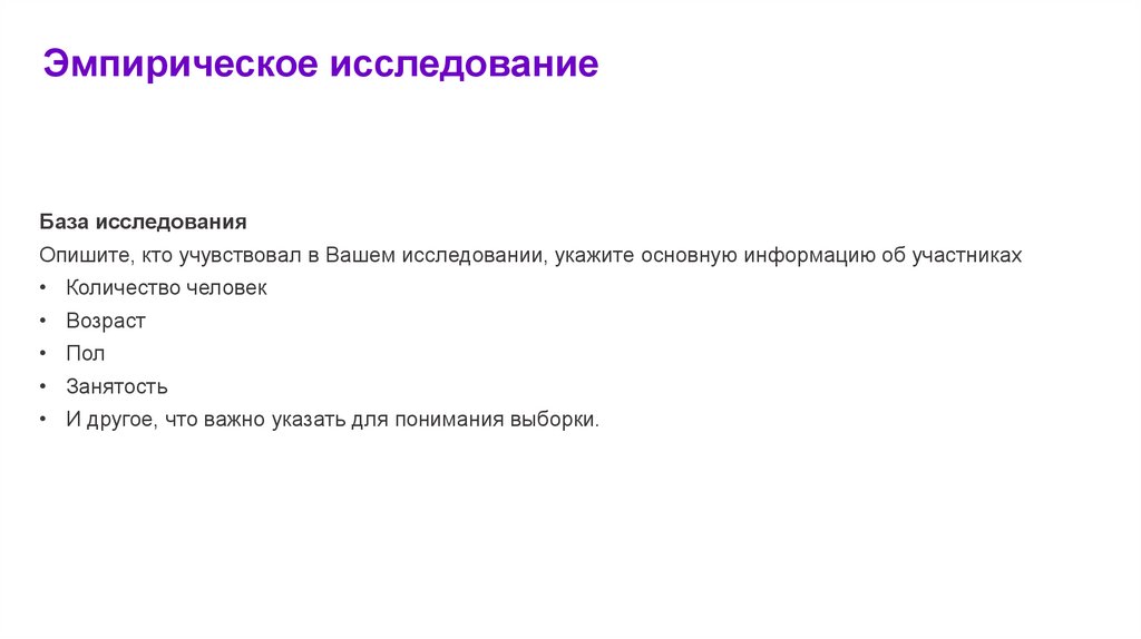 Выводы по эмпирическому исследованиюОпишите свои выводы по проведенному исследованию