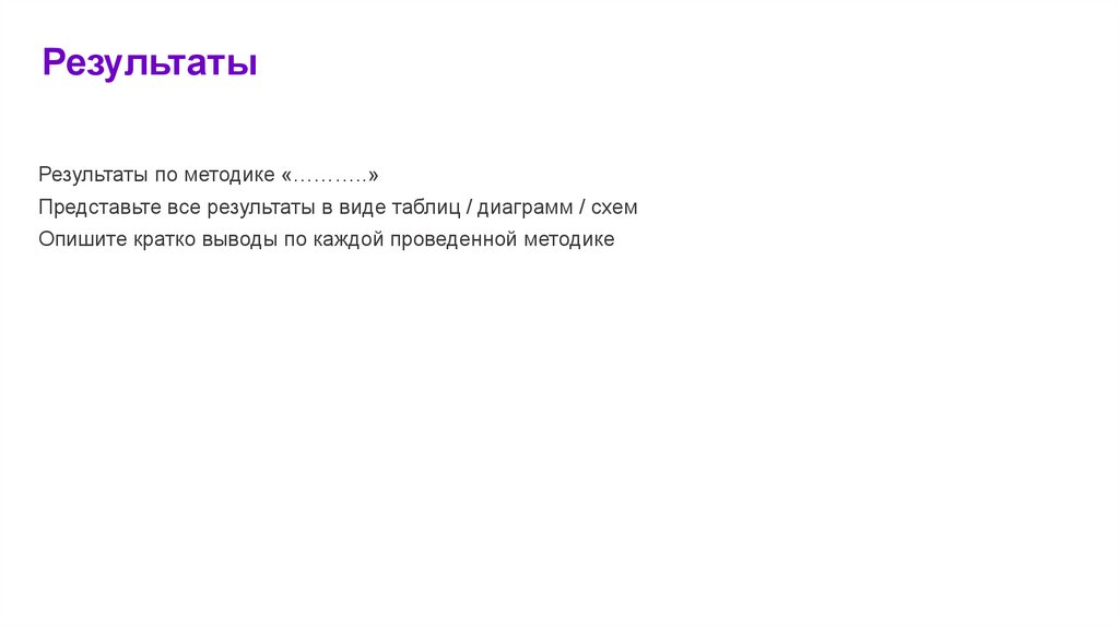 Представьте все результаты в виде таблиц / диаграмм / схем