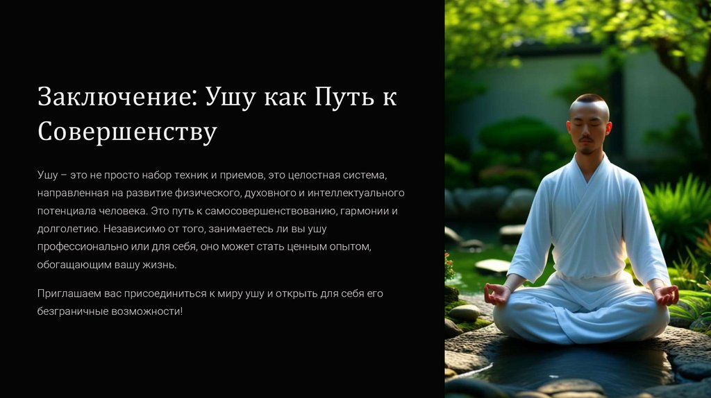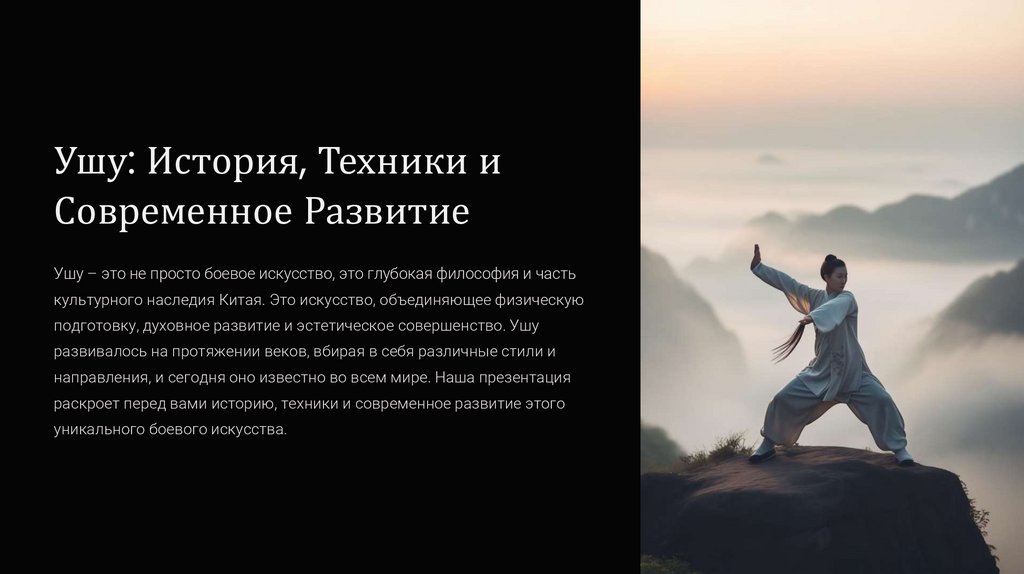подготовку, духовное развитие и эстетическое совершенство. Ушу