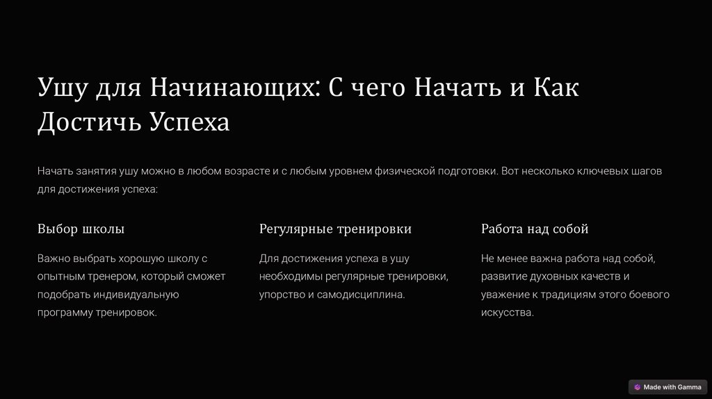 Начать занятия ушу можно в любом возрасте и с любым уровнем физической подготовки. Вот несколько ключевых шагов