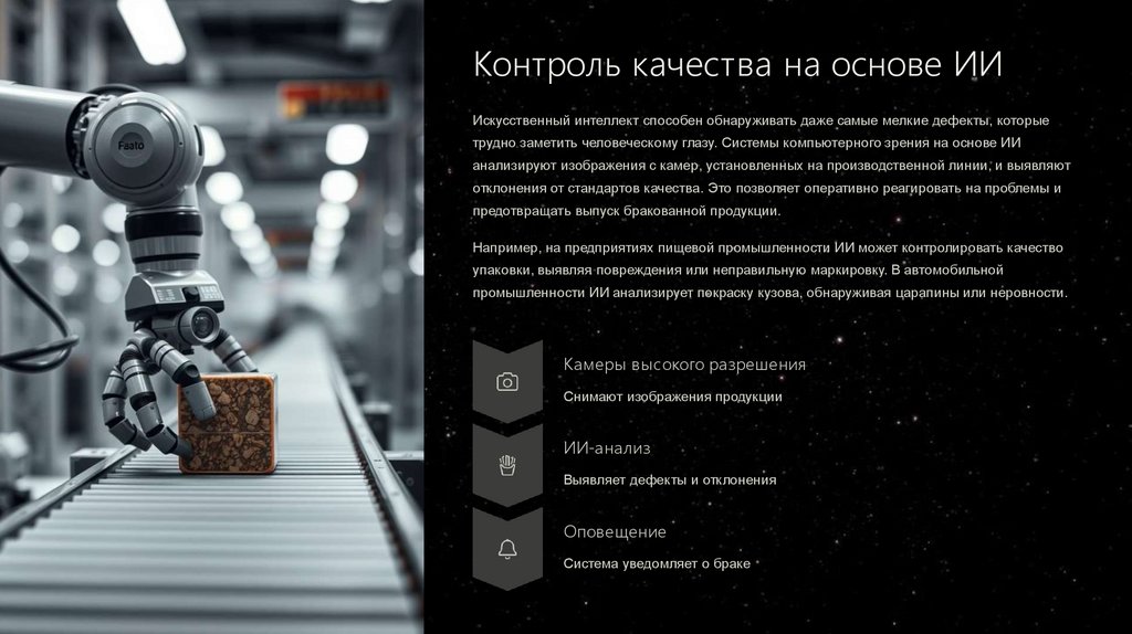 Например, на предприятиях пищевой промышленности ИИ может контролировать качество