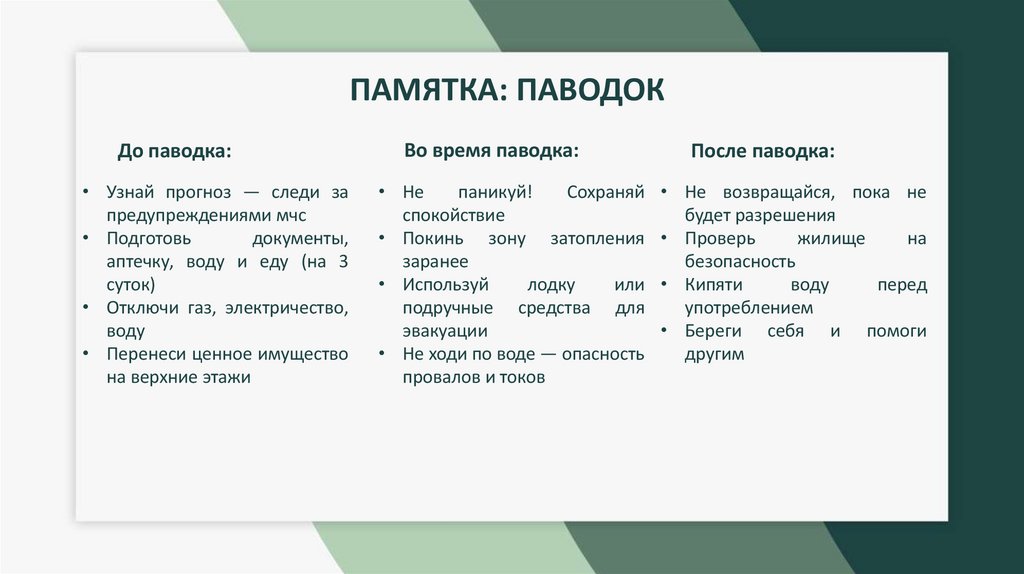 ПАМЯТКА: ПАВОДОКДо паводка: