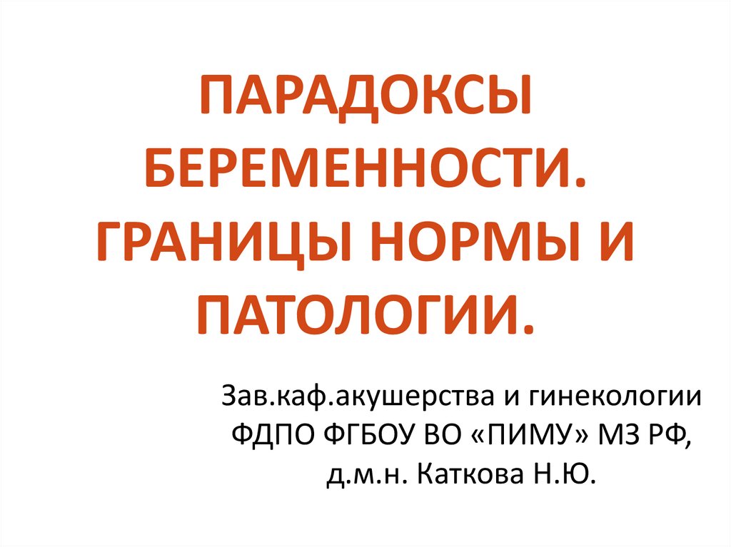 1. ПАРАДОКСЫ БЕРЕМЕННОСТИ. ГРАНИЦЫ НОРМЫ И ПАТОЛОГИИ.