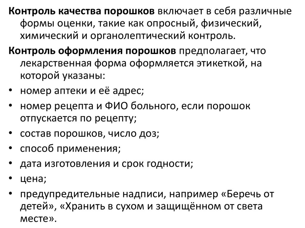 Лекарственная форма «Порошки». Технология изготовления порошков