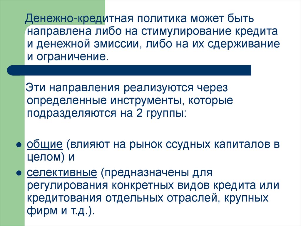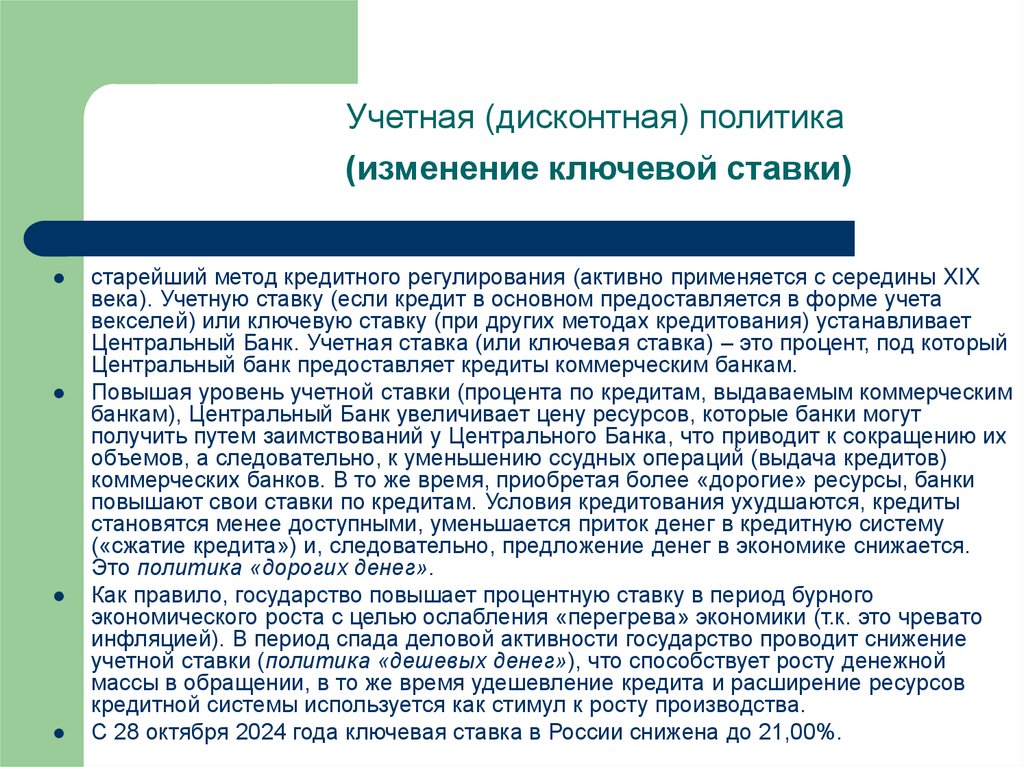 учетной ставки (политика «дешевых денег»), что способствует росту денежной