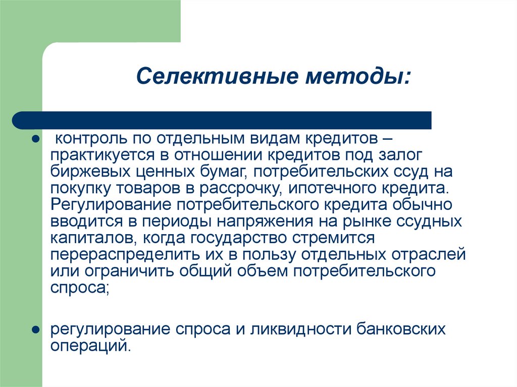 С помощью основных и селективных инструментовЦентральный банк РФ реализует цели денежно-кредитной