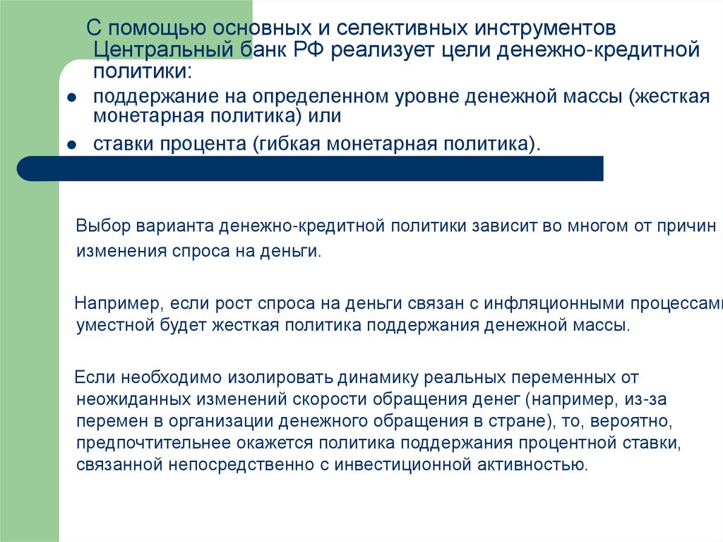 Выбор варианта денежно-кредитной политики зависит во многом от причин