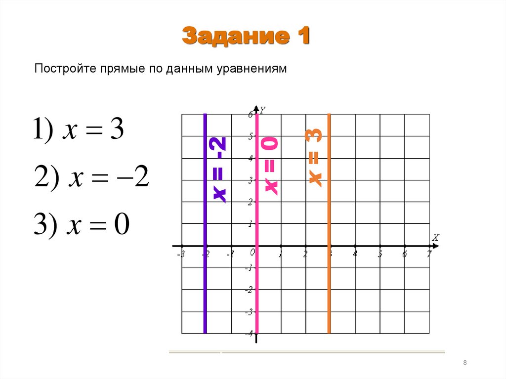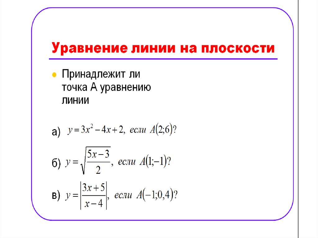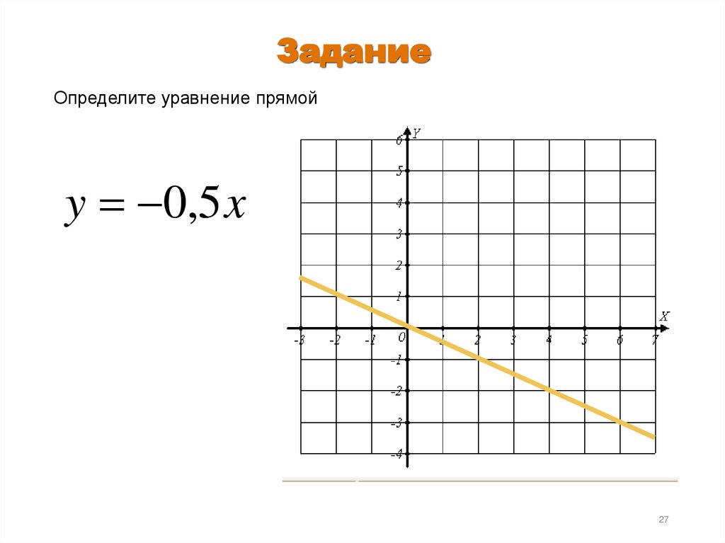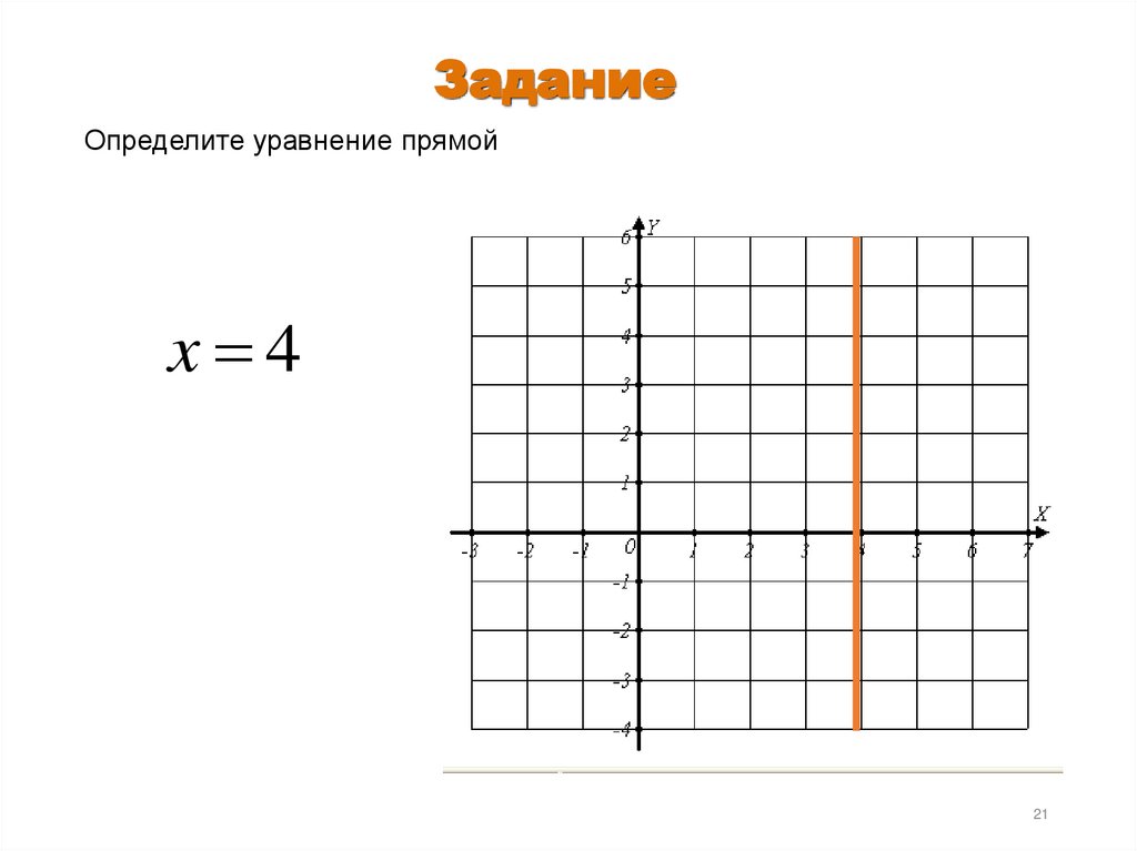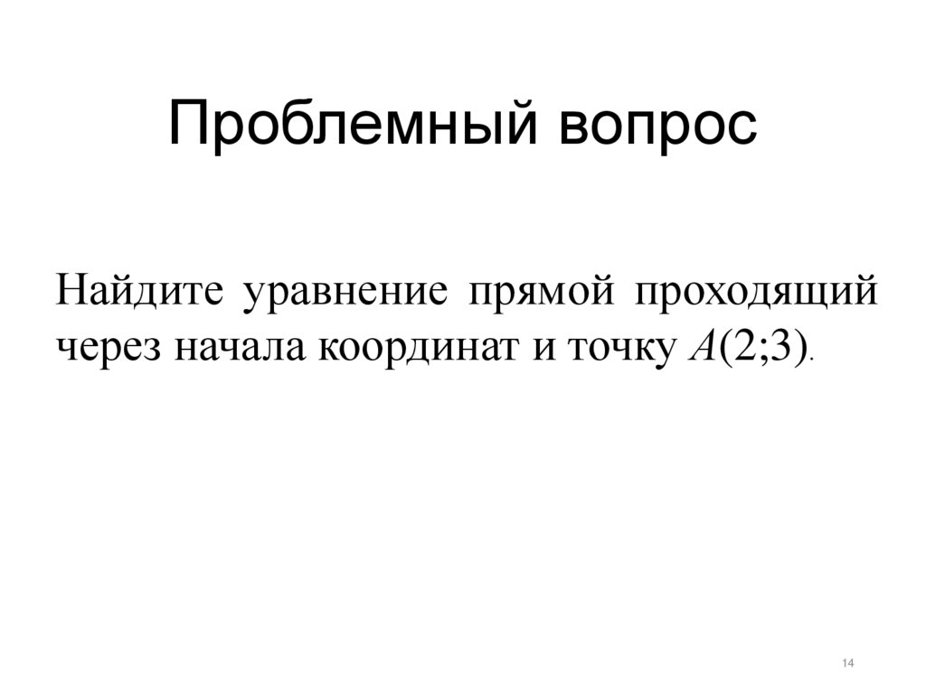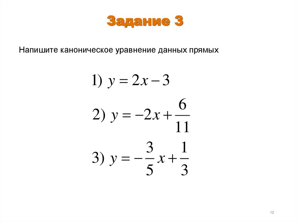 • Умеет записывать уравнения прямойпроходящий через две точки.
