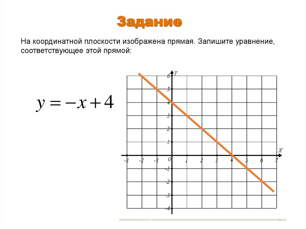 ЗаданиеНа координатной плоскости изображена прямая. Запишите уравнение,