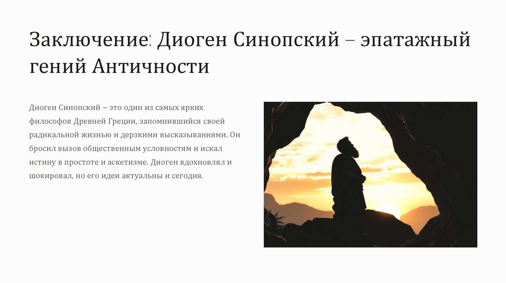 Заключение: Диоген Синопский – эпатажныйгений Античности