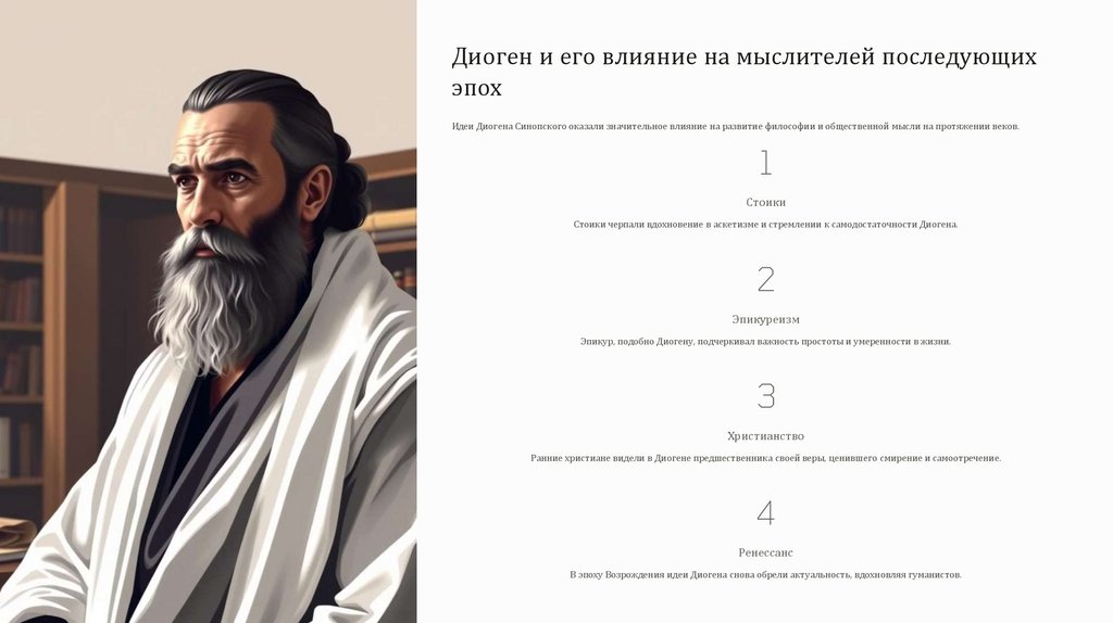истину в простоте и аскетизме. Диоген вдохновлял и